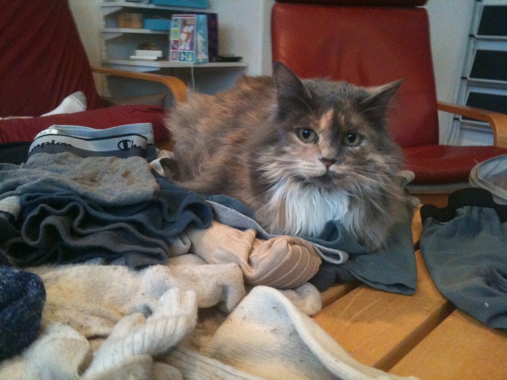 Sophie helps fold the laundry