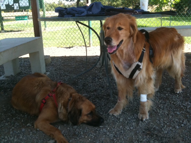 Here we are at the dog park in Davis, ready to go home after Kai’s last radiation treatment.