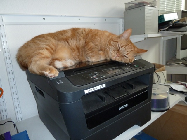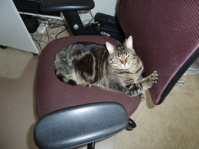 Momo likes the scanner/printer, and Baby likes my computer chair. The chair has a nice scratchable back.
