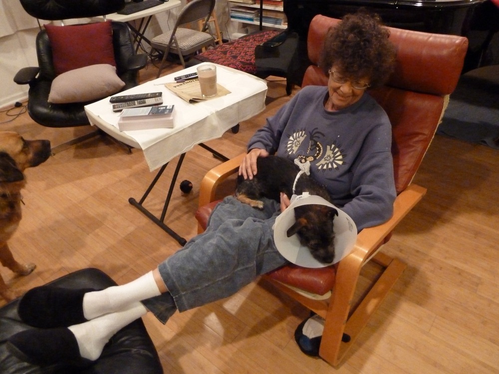 Fritz was neutered on Tuesday and came home that evening. He has to wear a cone to keep him from licking the incision. He was noticeably unhappy about the cone for about 24 hours and then got used to it. He looks like a little four-legged vacuum cleaner, and acts like one too. He’s gone from not eating anything to being on the hunt for food every waking minute (happily, he sleeps a lot). He tries to get up onto every surface that might contain food — cat shelf, dining table, TV tray, lap. Between Fritz and Callix we’re getting used to securing the food supplies much more carefully than we had to with just Kai and Chester.
