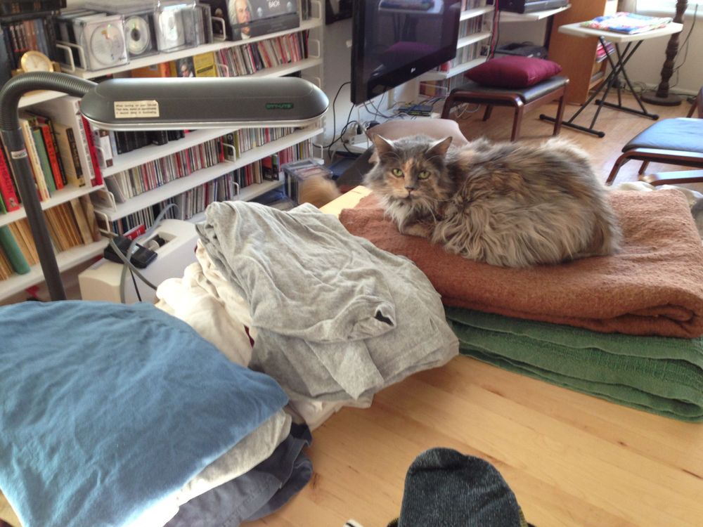 Once again, Sophie helps fold the laundry