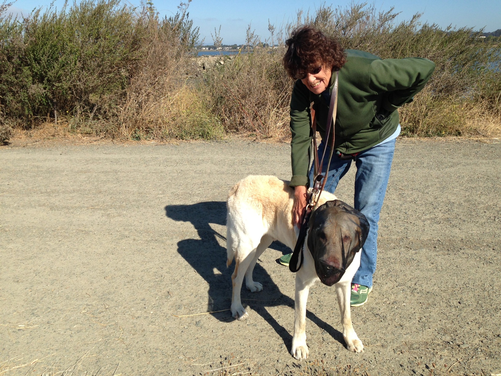 Mr Doofus has become quite the poop eater at the dog park. The mesh mask is designed to protect against foxtails (quite a problem for some pups here) but we are using it to make it more difficult for Callix to get at the wonderful variety of scat at the park. He hates it, but it’s working. It’s preferable to treating for giardia every couple of months.