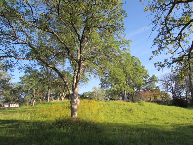 You climb this little rise and find a lonely olive tree (center of the photo) among some outcroppings of granite — hence my name for it. The yellow tint comes from tiny wildflowers called fiddlenecks (http://en.wikipedia.org/wiki/Amsinckia).
