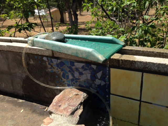 We have to monitor the main pump and flow, because there are leaks in the concrete channel that cause the basin to run dry after a full day of use. But I think we’ll be able to run this part of the water feature 24 hours a day. I hope so, because the birds really need the water.