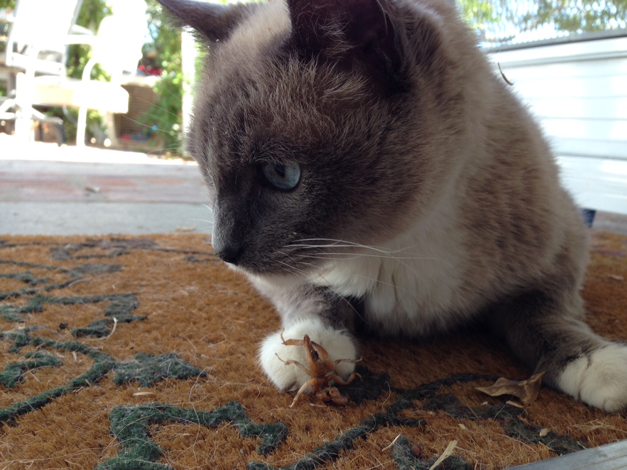 Just to show us that Fritz isn’t the only one who can catch game, Willy caught a Jerusalem cricket, brought it to the kitchen door, and ate it.