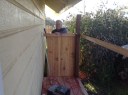 As you know, Arlin and Betsy have been busy designing and building a structure to surround our composting toilet. Arlin does the building and Betsy does the supervising. I lot has happened since our post on March 3rd.