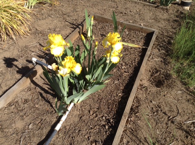 Kathy and I weeded out the iris beds and discovered a yellow iris that was desperately trying to bloom. As soon as it was given the opportunity to breathe, it just was so happy!
