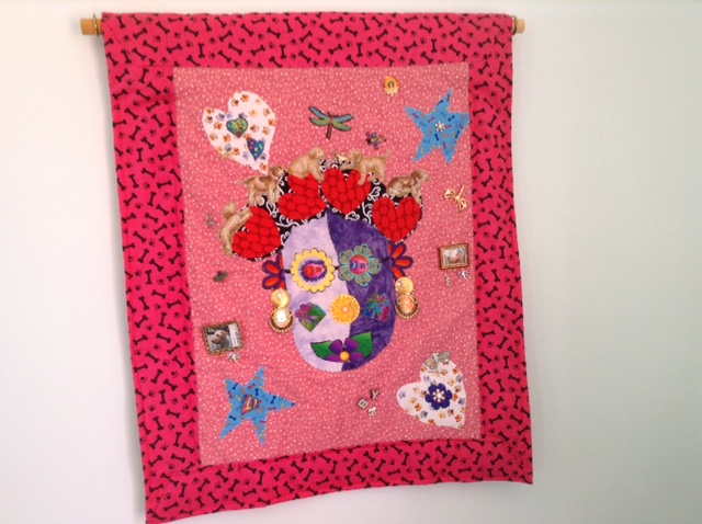 My self portrait, entitled Puppy Love, just got hung in the craft house!