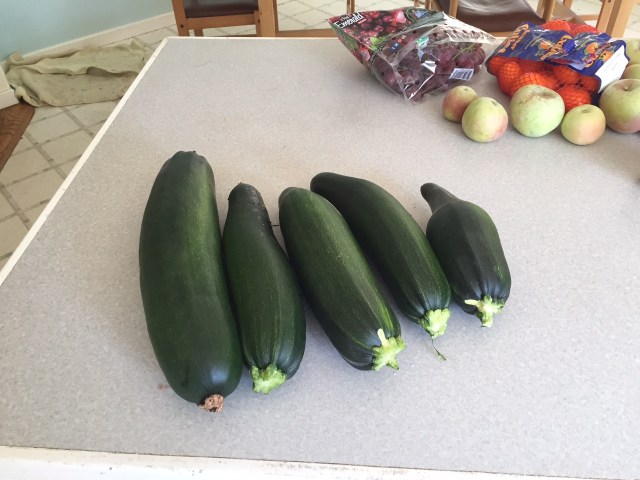 …if I didn’t check the zucchini every day. Luckily I picked these before they reached critical mass. The largest one weighs 3 1/2 pounds.