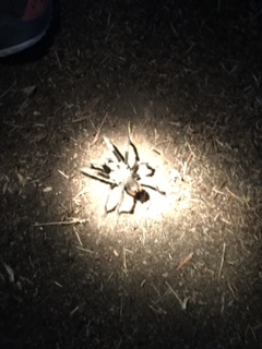 It is difficult to get a photo of a hunting tarantula. He was moseying along our walk-about path last evening.