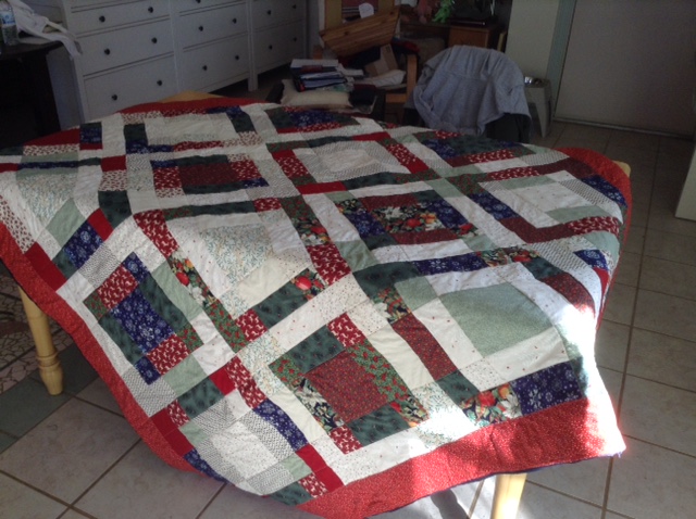 Finally finished the quilt for Pauline’s fundraiser Fall Fair at the end of this month. I called it Holiday Medley. It has some issues but we won’t dwell on those. Overall I’m quite happy with it. And improving all the time thanks to my Sierra Mountain Quilters Association friends.