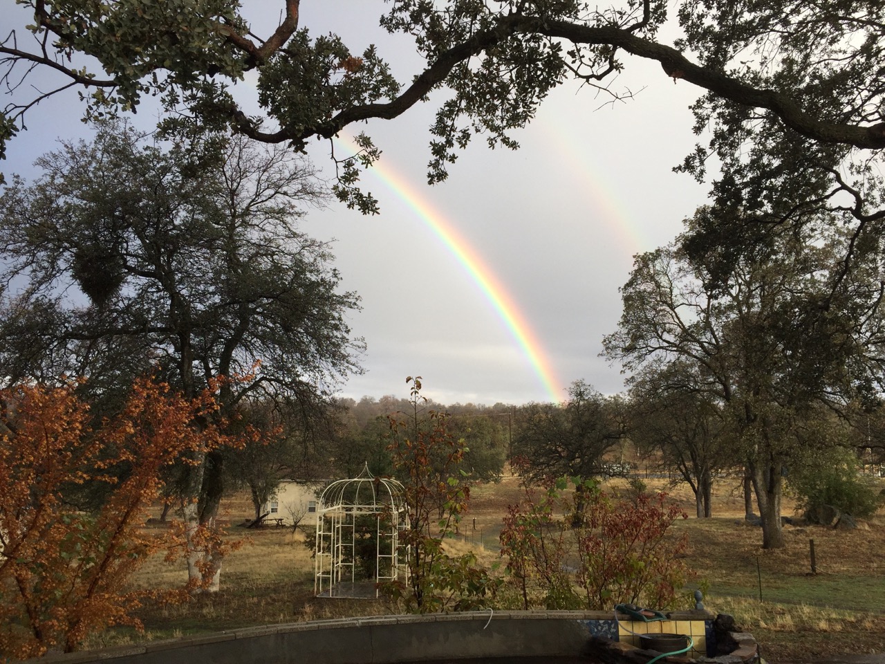 We’ve had several decent rains this fall, totaling about 4 1/2 inches so far. I caught this double rainbow on November 10 at 7:54 am.