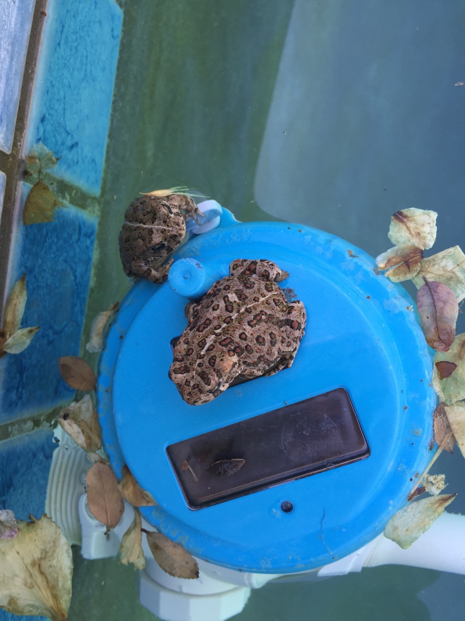 For the last couple of weeks the pool has played host to a number of young California Toads — Anaxyrus boreas halophilus (http://www.californiaherps.com/frogs/pages/a.b.halophilus.html)