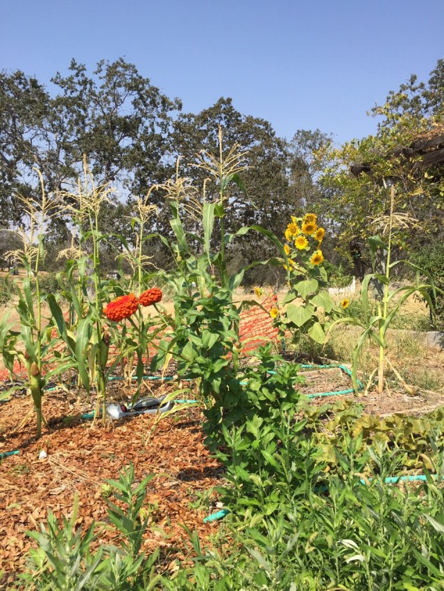 Not a very good corn crop this year. But it’s remarkable that the best zinnia and the best sunflower we have this year are both volunteers in the corn patch.