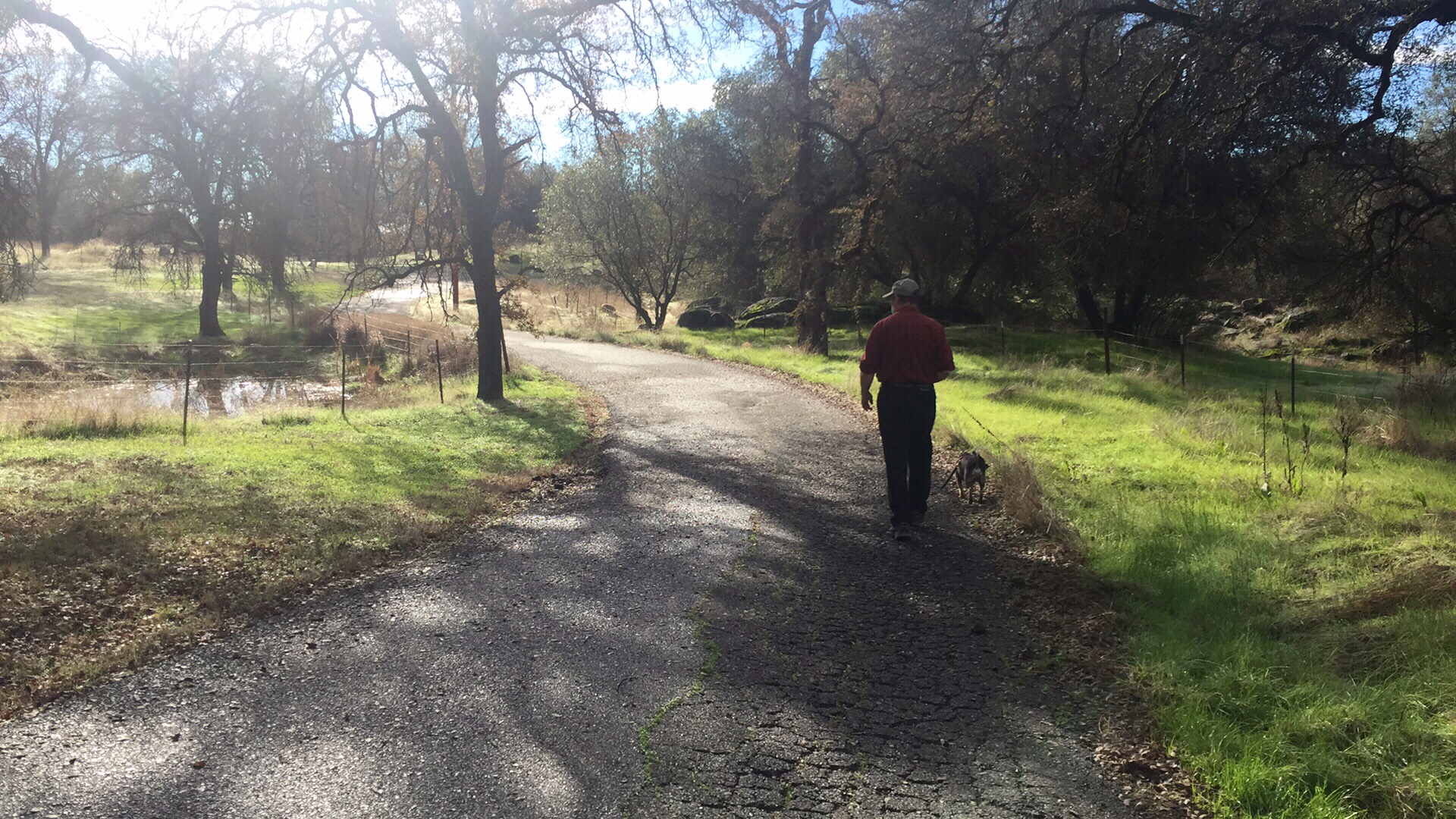 Our (almost) daily walks start out with 3 humans and 4 canines. Betsy and her pups go back in while Phil and Fritz and Arlin and Chester continue on down into the little valley. This little road is so picturesque.