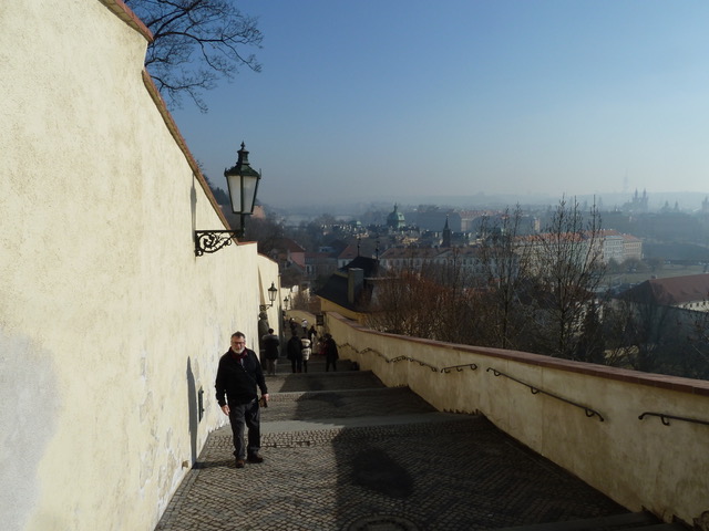 Heading back down after visiting the Castle in Prague…