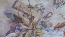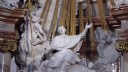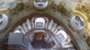 The Karlskirche (Church of St. Charles Borromeo) in Vienna has scaffolding that was used in restoration work but is now open to visitors. You can take an elevator to a platform at the level of the drum that supports the dome, and then you can walk up steps (if you dare) right up into the cupola on top of the dome. Along the way you can see close-up the dome paintings that you ordinarily would have to view from 150 feet below. When you get to the cupola you find the Holy Spirit, in the form of a dove that looks as if it’s about to sink its claws into you.