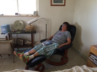 Phil and Arlin got me a new chair for my birthday. They swear this one will help my comfort and healing as I continue to do battle with sciatica. Now I can fall asleep in my chair like the rest of the family!