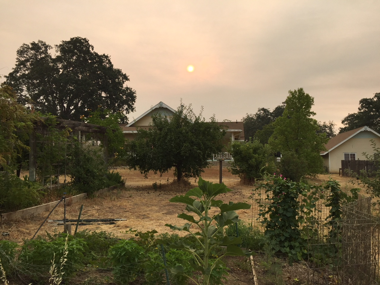 The Ferguson fire outside Yosemite is about 25 miles directly north of us and not a threat, but we can smell its smoke in the early morning, and it has affected the air quality for many miles around.