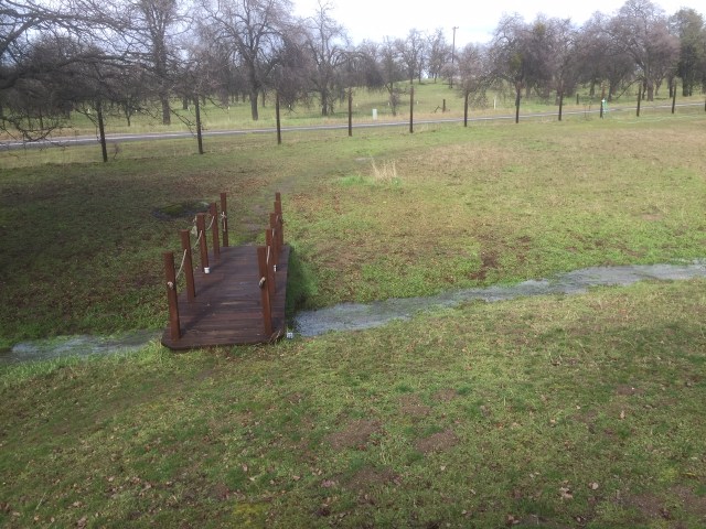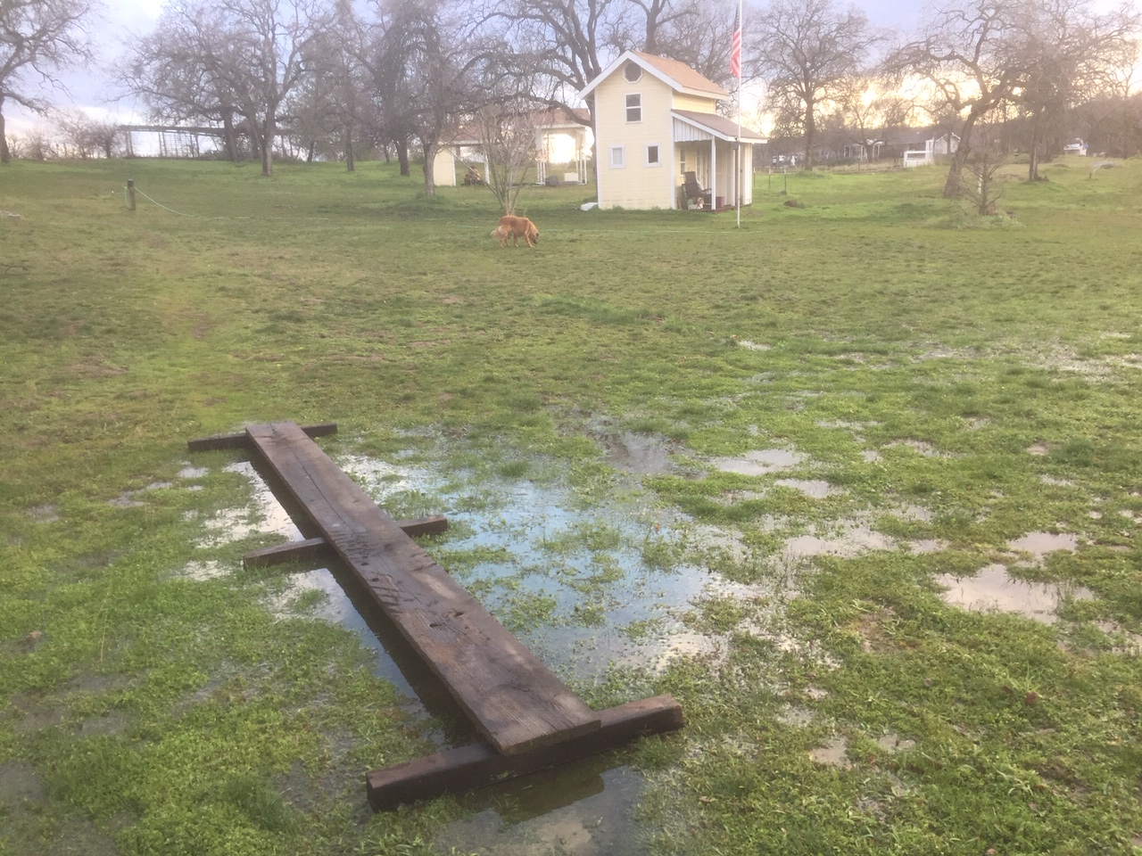 The makeshift footbridge on the path to the mailbox is barely adequate.