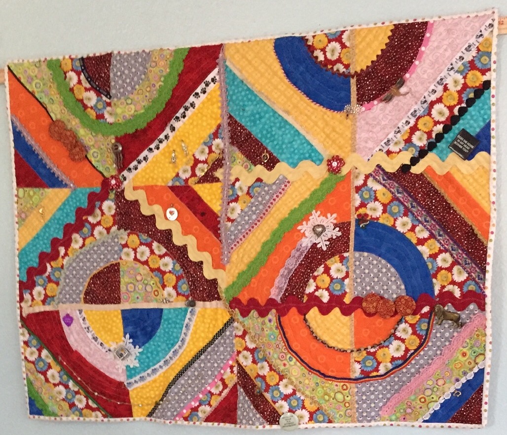 Soren and Arlin got the “Noise in my Head” quilt hung in the kitchen in the big house.