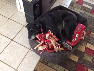 Yesterday we said our farewells to Carlton, aka Mr. Barkey, aka Mr. B. He was only with us for five months but managed to rule our schedules during that time. When Mr. B. Wanted a snack, Mr. B. Got a snack. When Mr. B. wanted to go out, his entourage accompanied him. He came to us of unknown background and unknown age, and we tried to give him a comfortable last few months. Over the last few days, he began to lose stability in his (relatively) “good” hind leg, stumbling and falling.